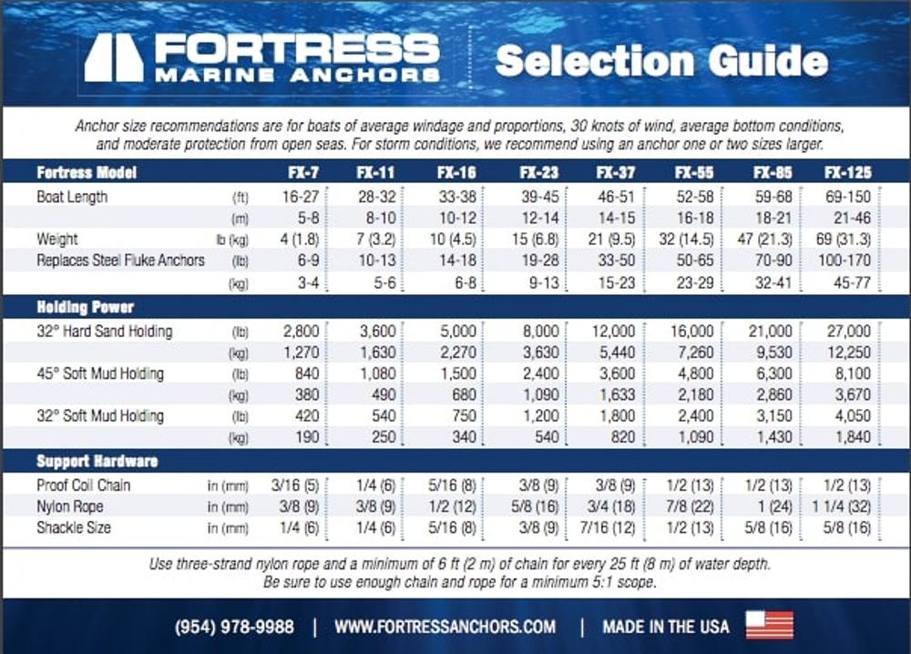 For over three decades, the much lighter Fortress Anchor has out-performed substantially heavier steel anchors in holding power tests conducted all around the world. In the US Navy tests, not only did the Fortress out-perform heavier steel anchors, they were also able to withstand pull loads that averaged over 200x their own weight. Fortress Anchors are constructed using a high-tensile, corrosion-resistant, aluminum magnesium alloy. This results in a lighter, easy to handle anchor with superior holding power.