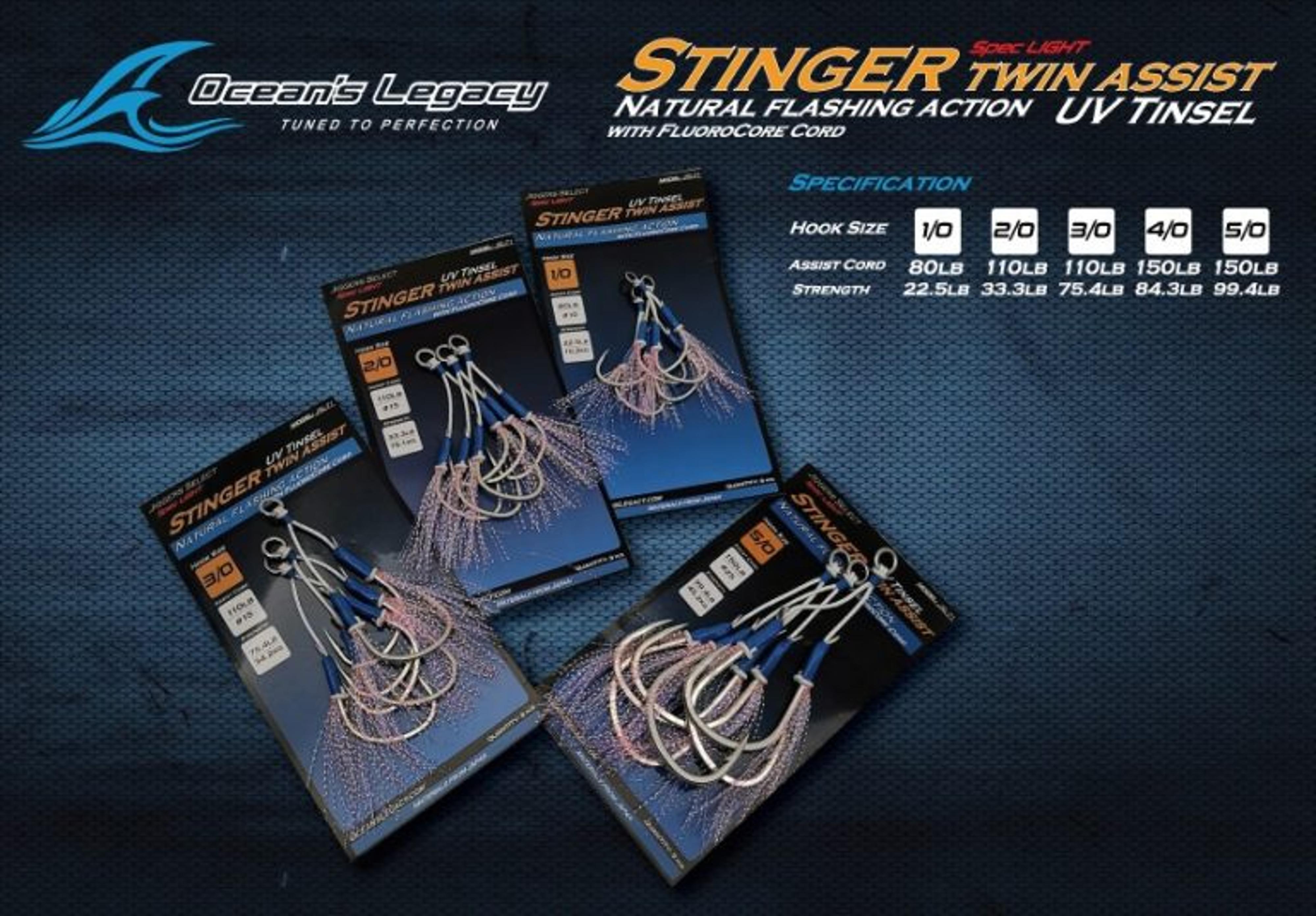 Professionally tied with “Fluorocore Cord” using ultra sharp spade styled slow jigging hooks. Our sleek design allows for minimum water resistance while maximising jig action. We use 2 toned high quality UV tinsel to increase bite rates. Our sizes caters for offshore and shore jigging applications including micro, slow pitch and deep drop jigging. Can be attached at the top of jigs and also run as a rear stinger.