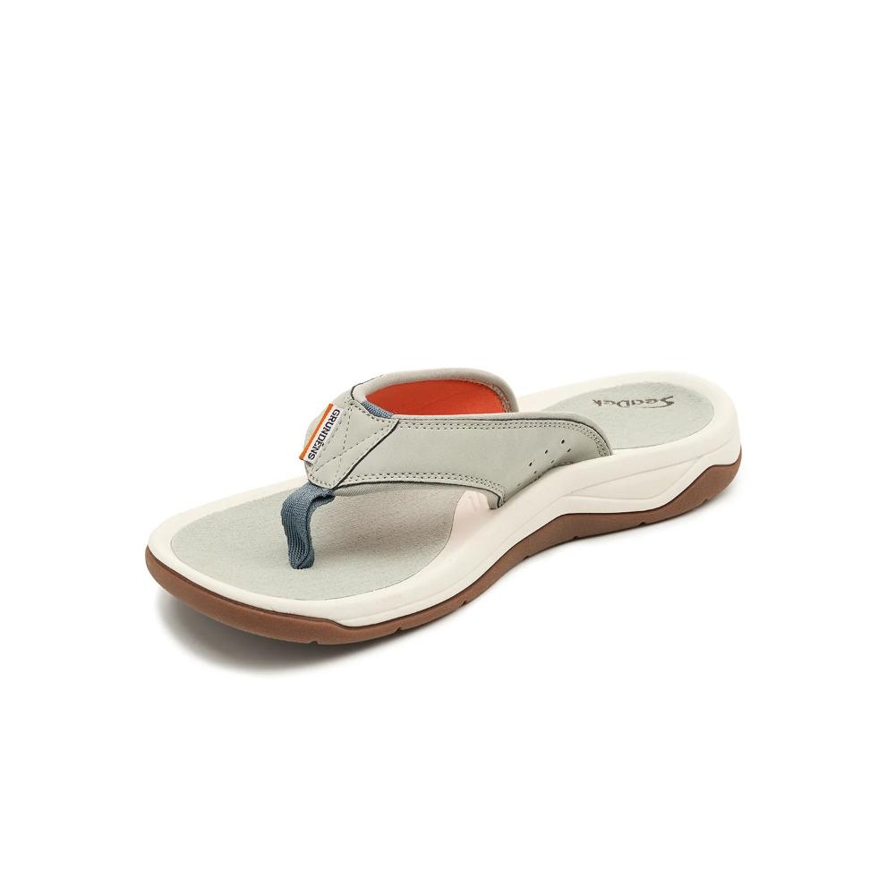 Comfort, performance, and style all in a flip flop. The DECK-BOSS&trade Sandal is the result of a strong collabo­ration with SeaDek&trade Marine Products to deliver an incredibly durable shock absorbent sandal. Reduced fatigue and exceptional traction are two things all anglers have on their wish list, and the SeaDek&trade foot bed and razor-siped natural gum rubber outsoles deliver exactly that. We’ve also prioritized cushioning using a molded EVA mid-sole and added antimicrobial properties to ensure all day comfort and that stench is left behind.