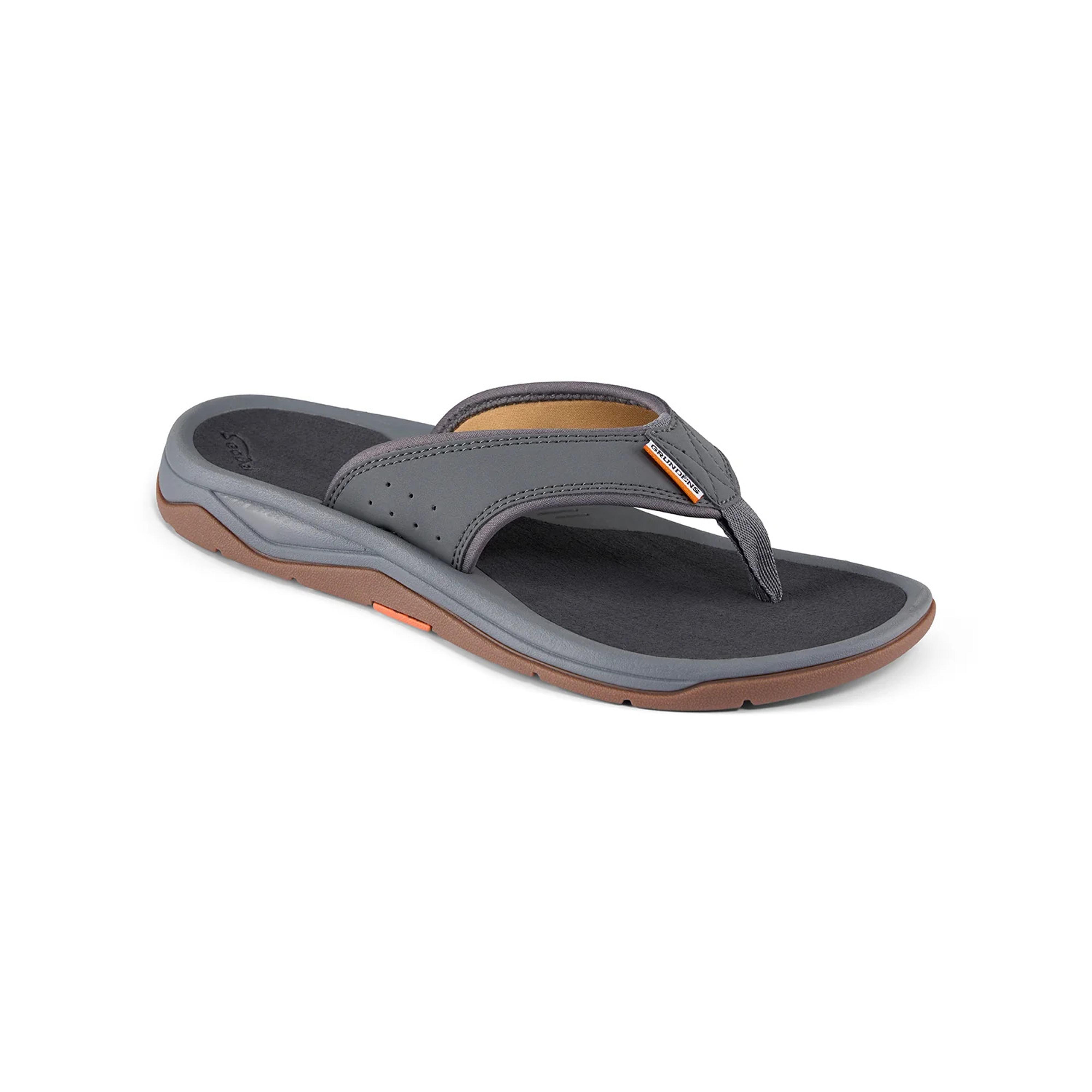 Comfort, performance, and style all in a flip flop. The DECK-BOSS™ Sandal is the result of a strong collabo­ration with SeaDek™ Marine Products to deliver an incredibly durable shock absorbent sandal. Reduced fatigue and exceptional traction are two things all anglers have on their wish list, and the SeaDek™ foot bed and razor-siped natural gum rubber outsoles deliver exactly that. We’ve also prioritized cushioning using a molded EVA mid-sole and added antimicrobial properties to ensure all day comfort and that stench is left behind.